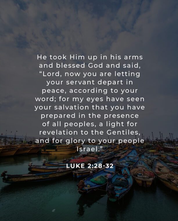 The prophet Simeon looked forward to the fulfillment of the prophecy of the coming of the Messiah. The Lord had revealed to him that he would see Him. In the text, we see the faithful fulfillment of what the Lord said to Simeon and to all peoples and nations throughout the Old Testament. None of the promises of the Lord go unfulfilled — He is faithful! Imagine yourself now, in Simeon’s place, with baby Jesus in your arms. How much joy! How much fun! We do not have Him in our arms, but we have Him in our hearts. Jesus is near and available — just believe. Believing in a God who never fails is not difficult. I pray He is born in your heart this year, if He is not already.